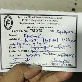 Devdoot Donor Ashok (B+) for 26yrs patient at Deen Dayal Hospital Hari Ngr for surgery in emergency..