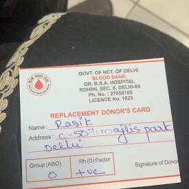 Devoted donor and hasey Kavi Rasik (O+) for 18yrs kid at Ambedkar Hospital Rohini hospital in emergency..