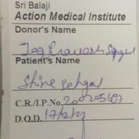 Real life devdoot donor Jagpravesh (O+) for 16yrs kid at Balaji Action paschim vihar hospital 2nd time for thalassemia treatment....
